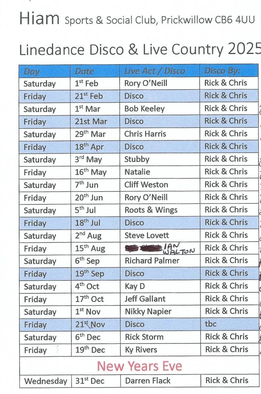 Hiam Sports and Social Club, Prickwillow Facebook